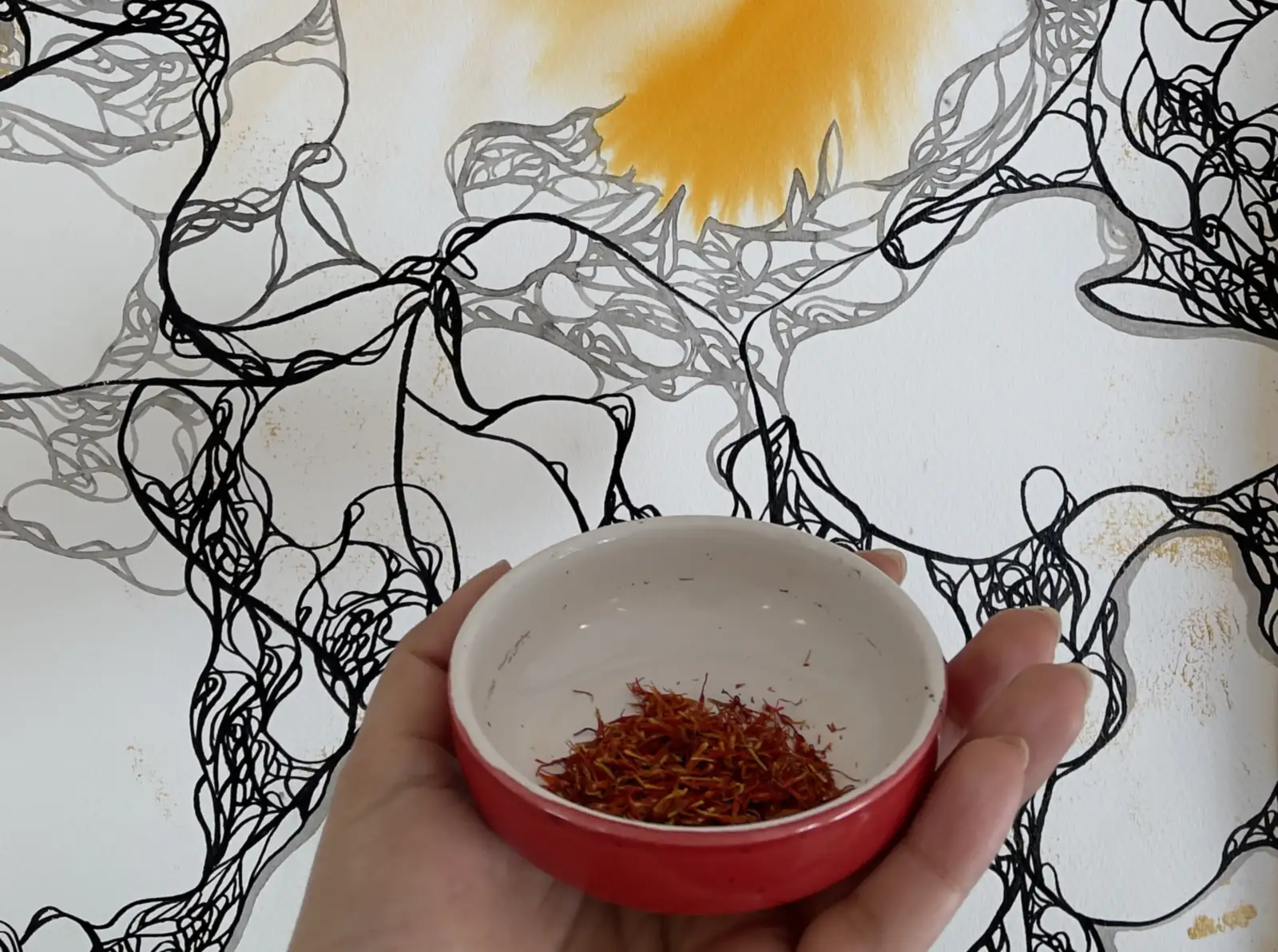 Farzaneh : encre et pigment naturel du safran sur papier japonais
